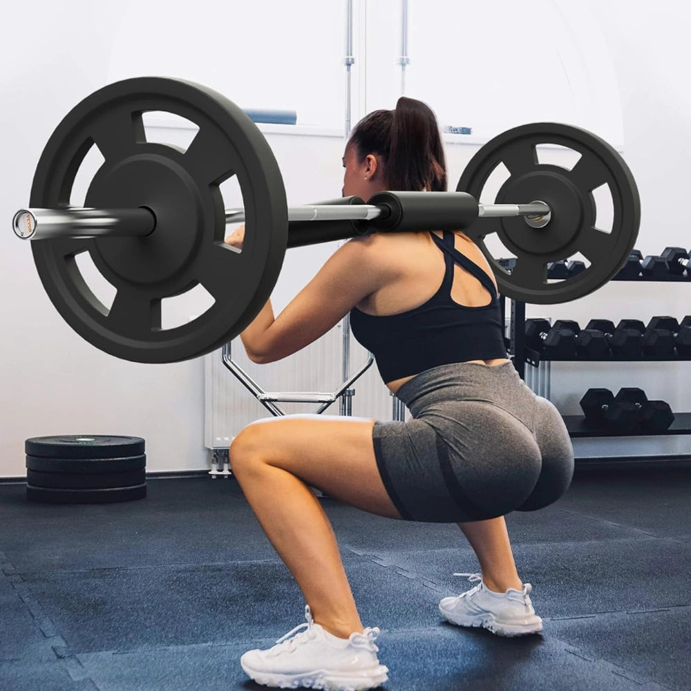 Entre son grip moleté propre, ses deux poignées verticales faciles à choper et son rembourrage mousse épaules/cou, cette barre de squat olympique t’aide à rester stable tout en travaillant les jambes, le dos et les hanches sans te tordre. Tu rajoutes tes disques 50 mm, tu fixes la pièce, et tu peux t’entraîner dans un espace réduit sans prise de tête. Parfaite pour musculation à domicile quand tu veux progresser sérieux.